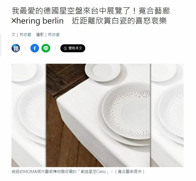 寬合藝所在本次的首發展覽中,使這波來自德國的新藝術瓷器風潮席捲全台!非常感謝各線上與線下媒體的盛大報導,我們將這些精采的內容集結於此,期待未來有更多的激盪。