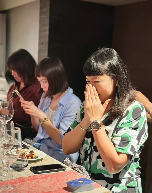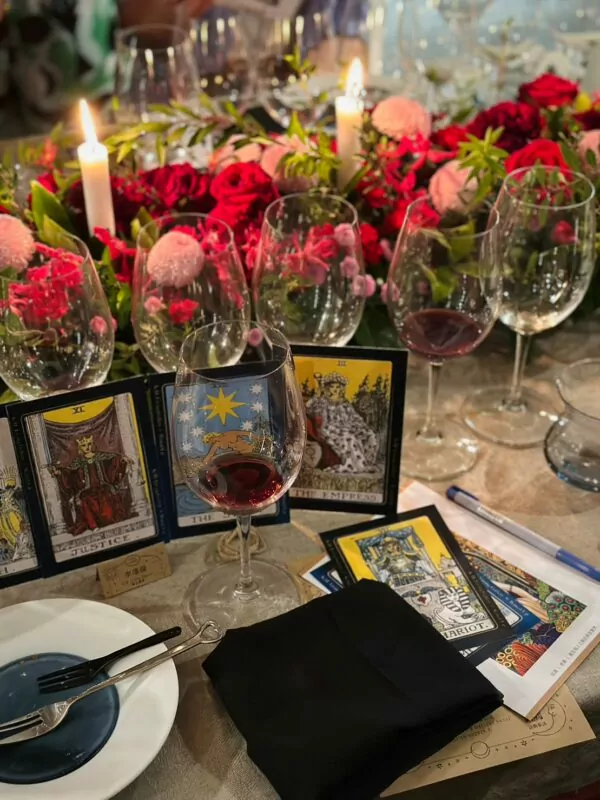貴賓穿越了彷彿時光隧道的悠遠廊梯,品飲豐富紅果香氣的粉紅酒、結合第一波的塔羅抽牌解惑,為探索自我之路刻下了難以忘懷的初次體驗,也為這一晚寫下十分特別的美麗序章。