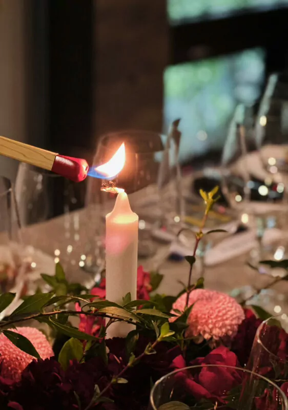 位於寬合藝所三樓的開放式茶席空間,此時的仲夏時光依然盈滿綠意,我們以豔夏暮時與夜晚的神話氛圍為概念,使用了燭光、燈光,以及許多靈感起源於大自然的器皿與物件(Hering Berlin 赫昀柏林.新藝術餐瓷),打造夢幻、華美的意境,彷彿身處虛實交織的美夢裡。