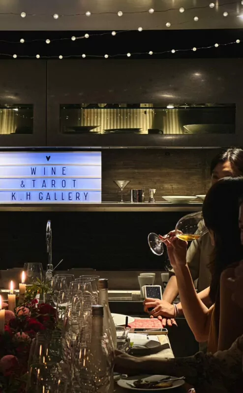 寬合藝所一直以來都致力於讓生活藝術化,我們熱愛並拼湊著生命中出現的一切美好風景,因此我們樂於與不同領域的人們互相激盪靈感,而此次、八月尾聲的一個仲夏夜,我們和 「Wined Up 尚酒酒窖」以及來自台南的塔羅占卜師迎來一次前所未有的跨界合作—一場結合品酒、塔羅、器皿的盛宴!寬合藝所的一切:穿透性極佳的挑高設計、綠意滿滿的開放式茶席空間、延伸至深處的夢幻梯間廊道,是為了創造更多美好感官體驗而生,在這日,人們沿著樓梯緩步上樓,就此翻開了古老魔幻神話的扉頁。