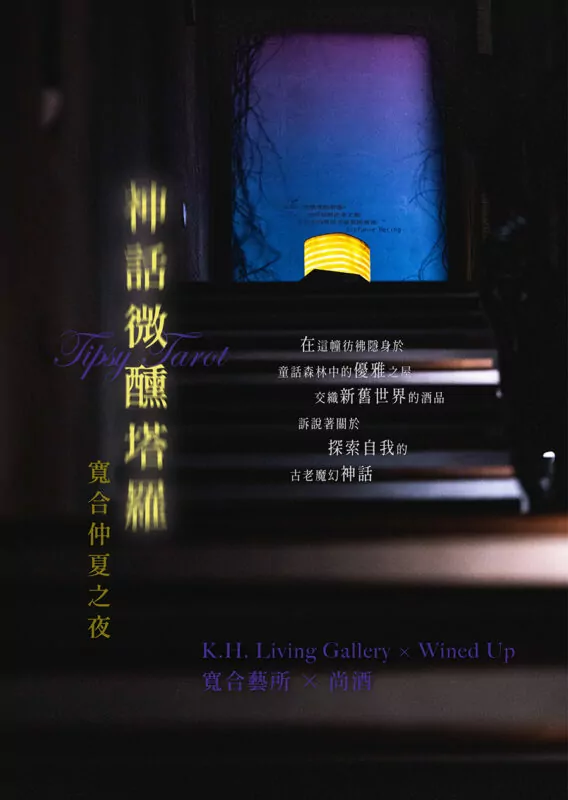 寬合藝所的神話微醺之夜,時髦鮮明的自然酒在愉悅氣息中驚豔亮相!每款酒品都有著專屬的性格,或溫柔、輕盈,或明亮、狂野,對應著六張分別為「戰車/死神/正義/星星/皇后/平衡」的塔羅牌,每位貴賓都能嚐到源於不同酒莊品種、新舊世界產地各異的酒款,並在啜飲同時,傾聽酒窖主理人與塔羅占卜師的專業解說,在享受醺然氣氛之餘,也能更加深入探索自己、過去和未來、自然和宇宙。