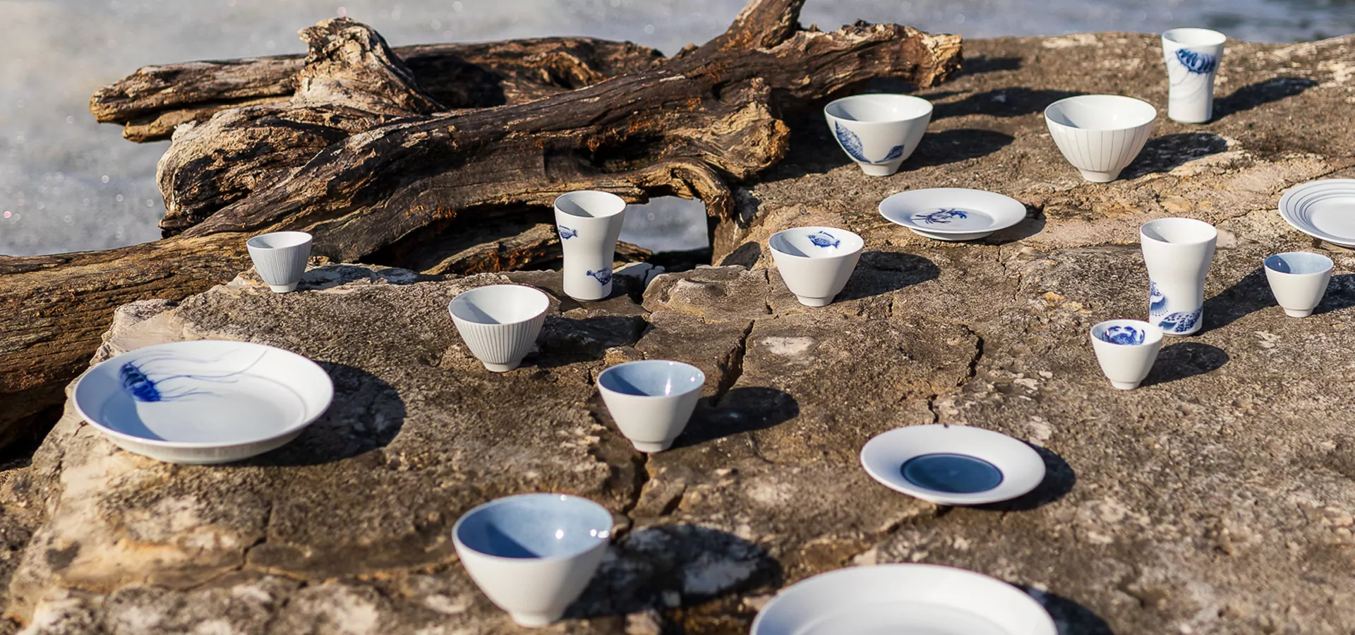 『Ocean海洋』更將洋底生物悠游於上,與德國插畫家跨界合作,以古代宮廷的青花瓷鈷藍為釉料,顏色溫潤飽和,充分傳達清新舒爽海洋意象,彷彿將整片汪洋帶入家中,如同漫步於德國北海岸。