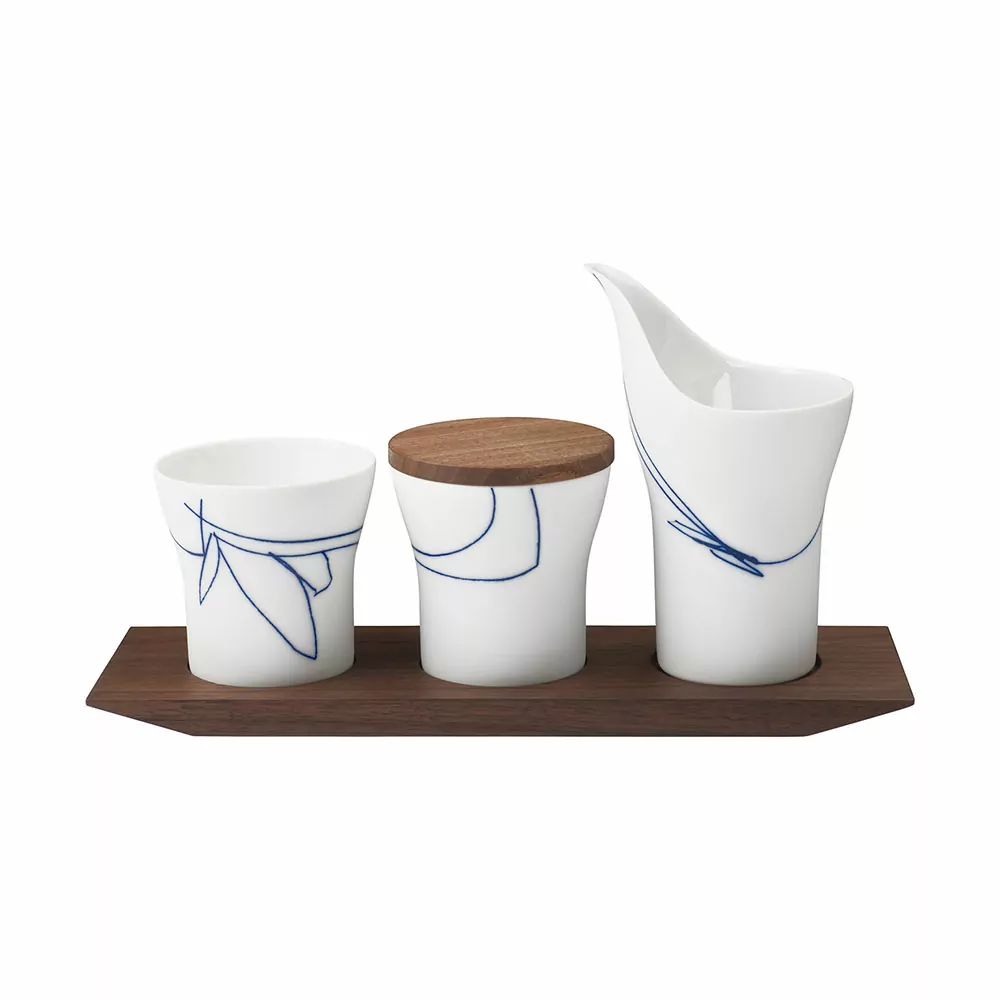 Double Sugar Bowl & Creamer Set With Wooden Tray丨糖 / 奶罐與木托組丨519